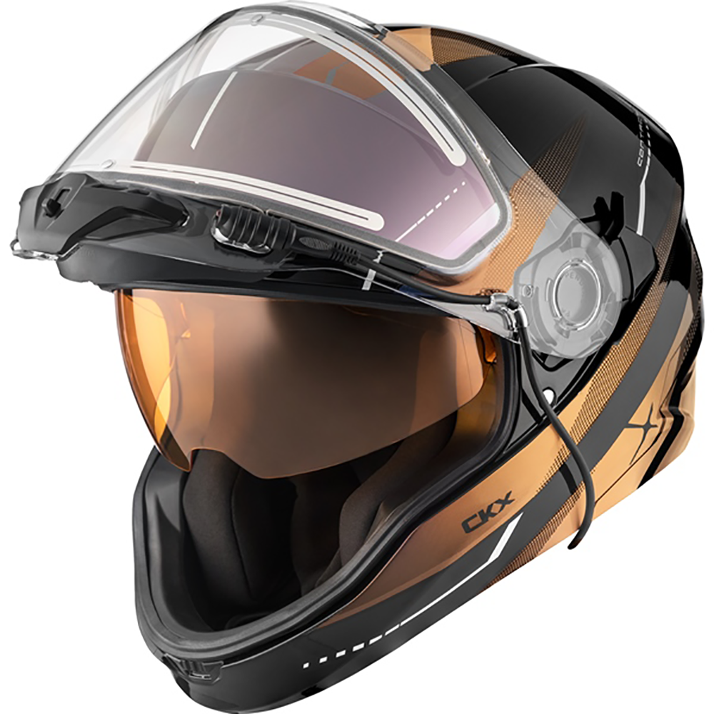 Designed for the winter and trail riding, the CKX Contact helmet is both minimalist and functional in design. Featuring an electric face shield with a lightweight and sleek construction, it stands apart for its ease of access and ease of use. No adjustment is required. The heated and oversized visor includes a built-in strain relief and a power indicator visible at all time. In addition to its broad field of vision, the shield opens easily and frees the whole face to accommodate drinking and talking. With the Contact, you will enjoy CKX signature comfort with 2 shell sizes, 4 EPS and sizes from XS to 3XL. Return to the essential, without adjustment and compromise with the CKX Contact electric helmet.