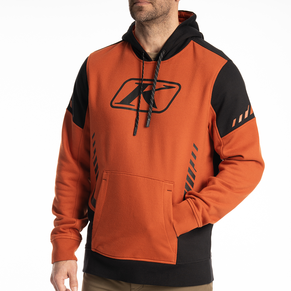The cotton polyester-blended fleece Portage Pullover Hoodie was designed for ultimate coziness and equipped with an adjustable drawcord at the hood to ensure a customized fit and maximum coverage. Natural stretch and a brushed interior keep you warm and comfortable with a 3-panel hood, lined with jersey for added coziness. A kangaroo front pocket provides warmth, convenient storage and functionality. Showcase your passion for powersports with KLIM graphics on the sleeves and chest.